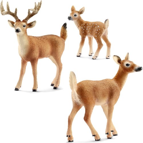 -. Feature : Schleich Wild Life Spielset mit 3 Weißwedel Hirsch-Figuren / Set enthält die 3 original Schleich-Tierfiguren mit den Modellnummern: 14709, 14710 und 14711 / Ideale Ergänzung zu einer vorhanden Waldtiere-Spielwelt mit anderen Spielfiguren dieser Serie / Detaillgetreu modellierte und handbemalte Spielfiguren in gewohnter Schleich Qualität / Weißwedel-Hirsche sind eine kleinere, weit verbreitete Hirschart Nordamerikas