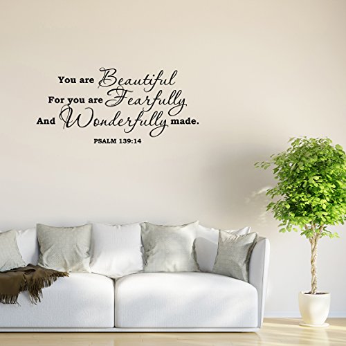 Wall Decal Quote Psalm 139:14 You Are Beautiful Bible Verse Scripture Wall Decal