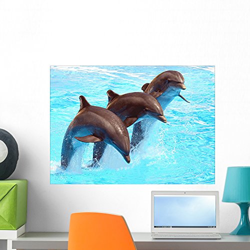 Leaping Dolphins Wall Mural by Wallmonkeys Peel and Stick Graphic (24 in W x 17 in H) WM111953