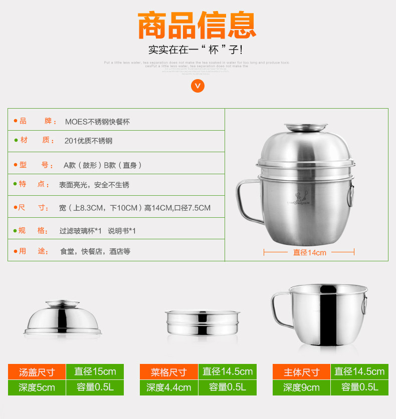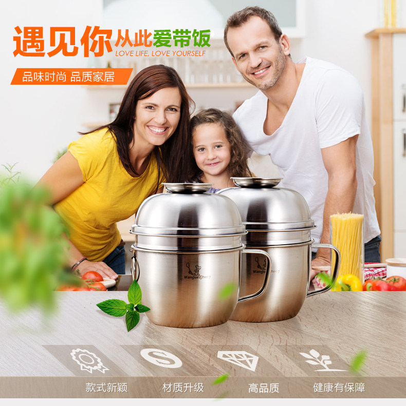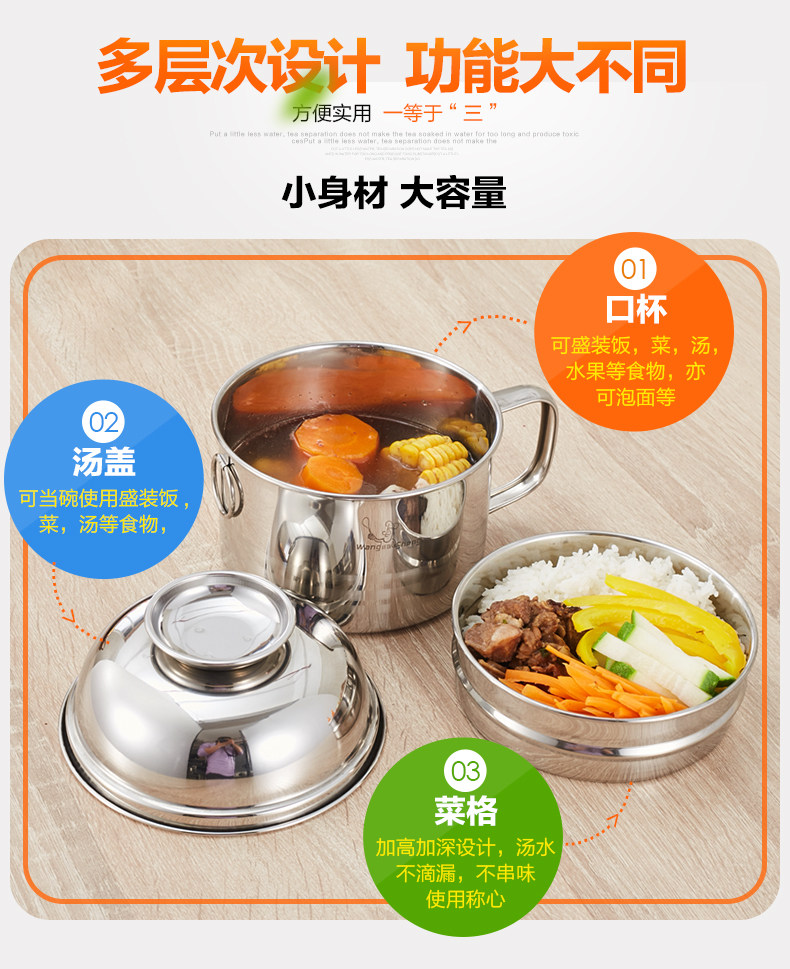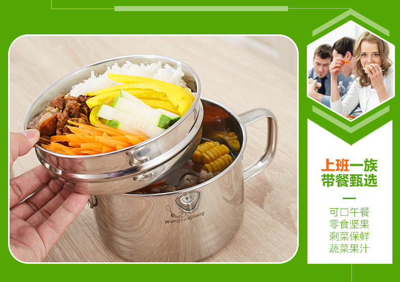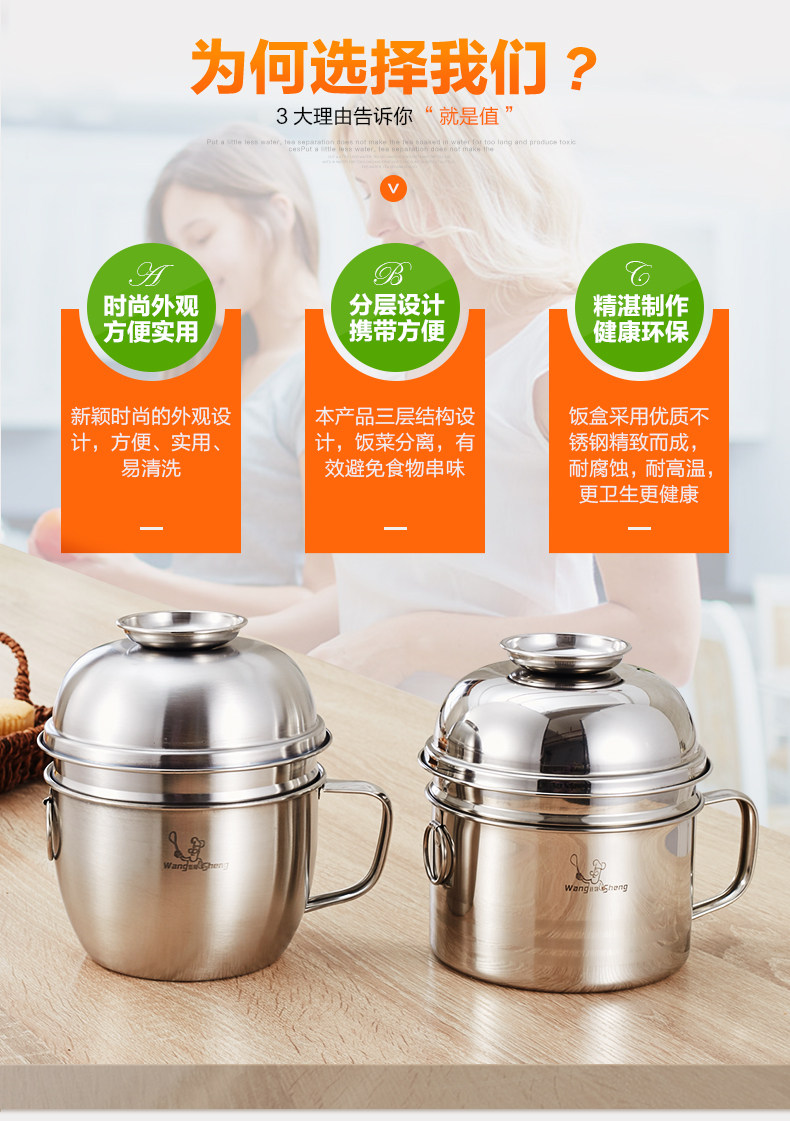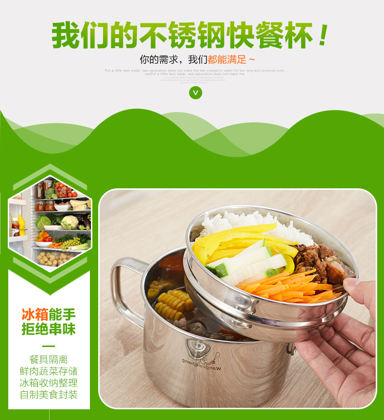 不锈钢饭盒圆形饭缸便当盒学生成人快餐杯分格2层泡面碗铁餐盒