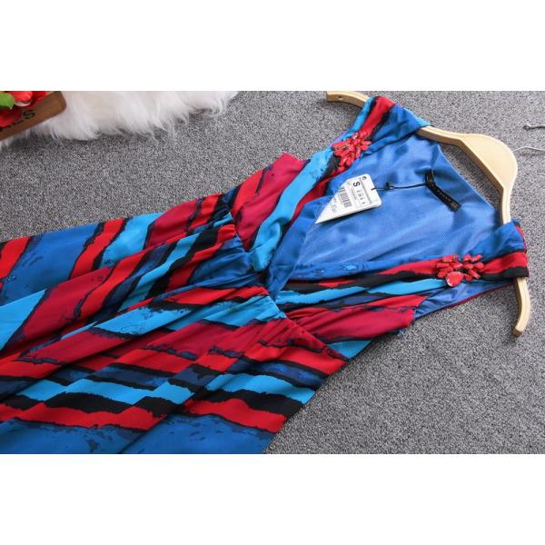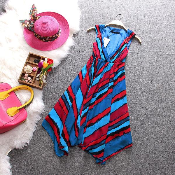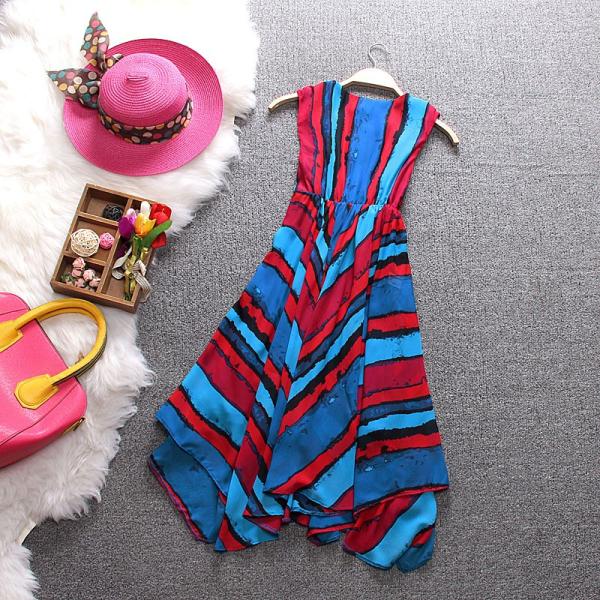 マルチカラーストライプのアシンメトリーノースリーブワンピース♪