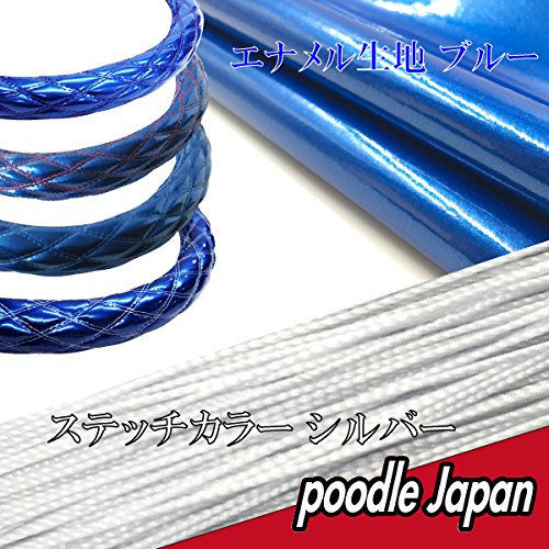 -. Title : MADE IN JAPAN 日本製 ハンドメイド 外径 (38-39cm) ハンドルカバー ダブルステッチ エナメル ブルー&シルバー TBH-EN0318-M トラック用品 軽自動車 トラック 乗用車 軽トラック 軽バン TBH-EN0318-M