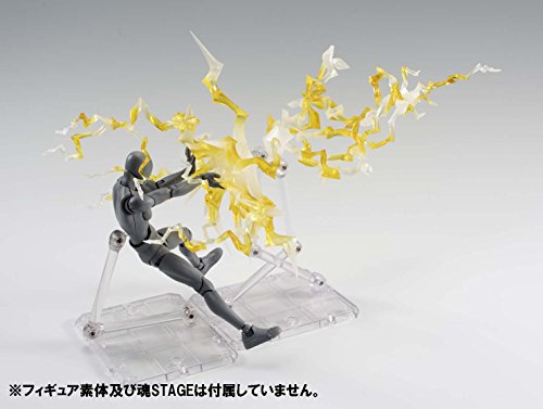 -. Binding : Toy -. Brand : Bandai -. Color : multi-colored -. EAN : 4543112964632 -. Feature : In six parts, combine them with your figures to recreate your favorite scenes / Stands and figures not included / Product bears official Bluefin Distribution logo ensuring purchaser is receiving authentic licensed item from approved N. American retailer / Bluefin Distribution products are tested and comply with all N. American consumer product safety regulations and are eligible for consumer support -. IsAdultProduct : 0 -. Label : Bluefin Distribution Toys -. Manufacturer : Bluefin Distribution Toys -. Model : BAN96463 -. MPN : BAN96463 -. NumberOfItems : 1 -. PackageQuantity : 1 -. PartNumber : BAN96463 -. Platform : No Operating System -. ProductGroup : Toy -. ProductTypeName : TOYS_AND_GAMES -. Publisher : Bluefin Distribution Toys -. ReleaseDate : 2015-10-15 -. Size : 8" -. Studio : Bluefin Distribution Toys -. Title : Bandai Tamashii Nations Tamashii Effect Thunder Yellow Version Action Figure -. Warranty : No Warranty
