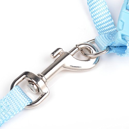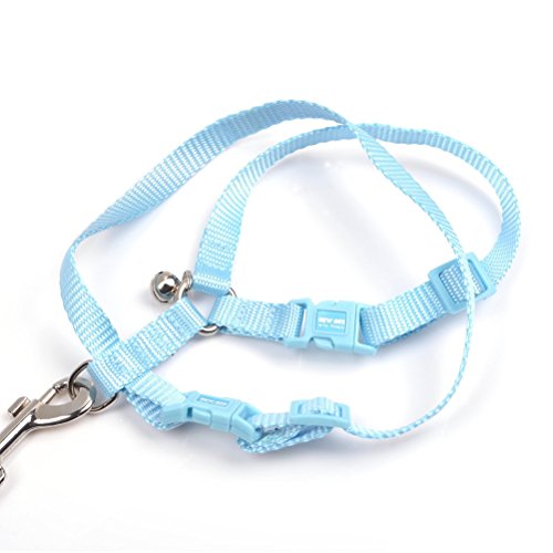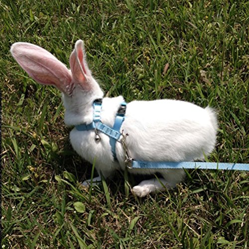 - Color: Sky-blue. - Material: Nylon. - Size: 115 * 1.3 cm / 45.3 * 0.5 inch (L * W). - Ultra-Soft materials for maximum comfort. - There is a activities buckle, adjustable to fit well for your pet. - With a small bell, funny and adorable. - Holds pretty well. Not easy to break. - Itoffers a comfortablecontrolwhen walkingyour little friend. Package Including 1 * set of Adjustable Pet Rabbit Walking Running Harness Leash Lead with Small Bell (Sky-blue) 0