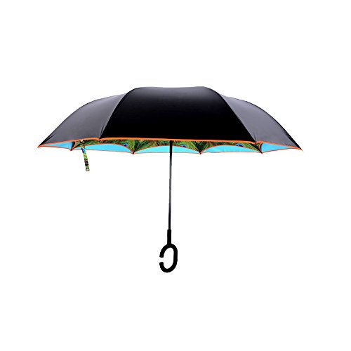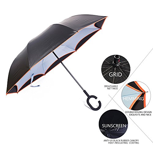 -. Title : Vejaoo Windproof Reverse Folding Double Layer Inverted Umbrella and Self Standing Inside Out Rain Protection Umbrella with C-shaped Hands Free Handle, Travel Umbrella