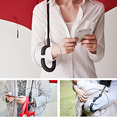 -. Feature : New inverted design, it opens and closes apex down, making getting into and out of a car or other covered area much easier all while shielding you from the rain / User-friendly button design, the embedded push-button switch is easy to operate and will not pinch / Textured C shape handle: it'll leave your hands free for holding a baby or using a mobile if needed,to solve the disabled go travel / Made of aluminum alloy shaft, water repellent-coated, breathable double layer canopy and smooth top / Size:33in * 8 panels; The Diameter of the canopy open is 43 inches, various colors available.