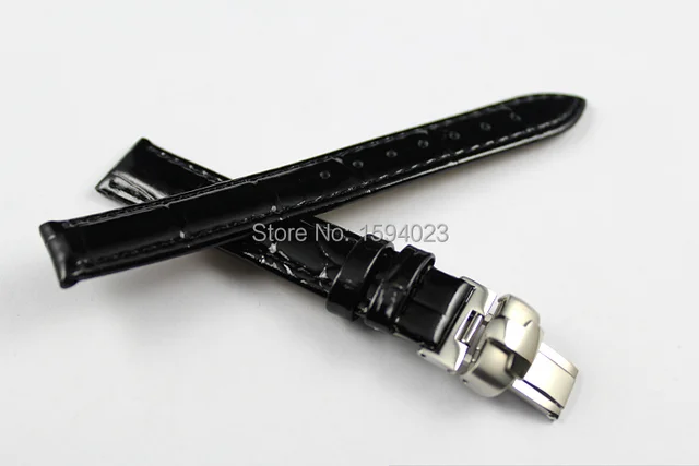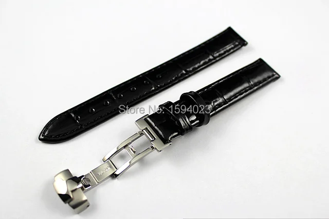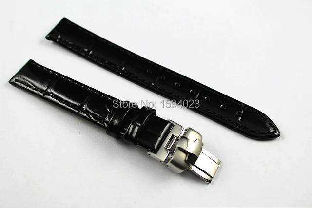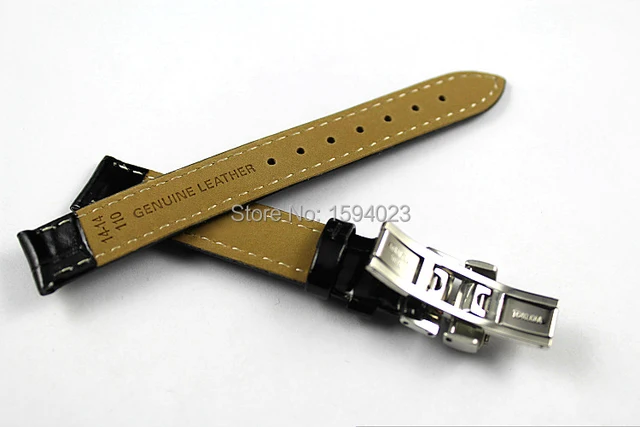 | [해외] 14 미리메터 (Buckle14mm) T02 높은 품질 실버 나비 버클 + 블랙 정품 가죽 시계 밴드 스트랩 여성 |