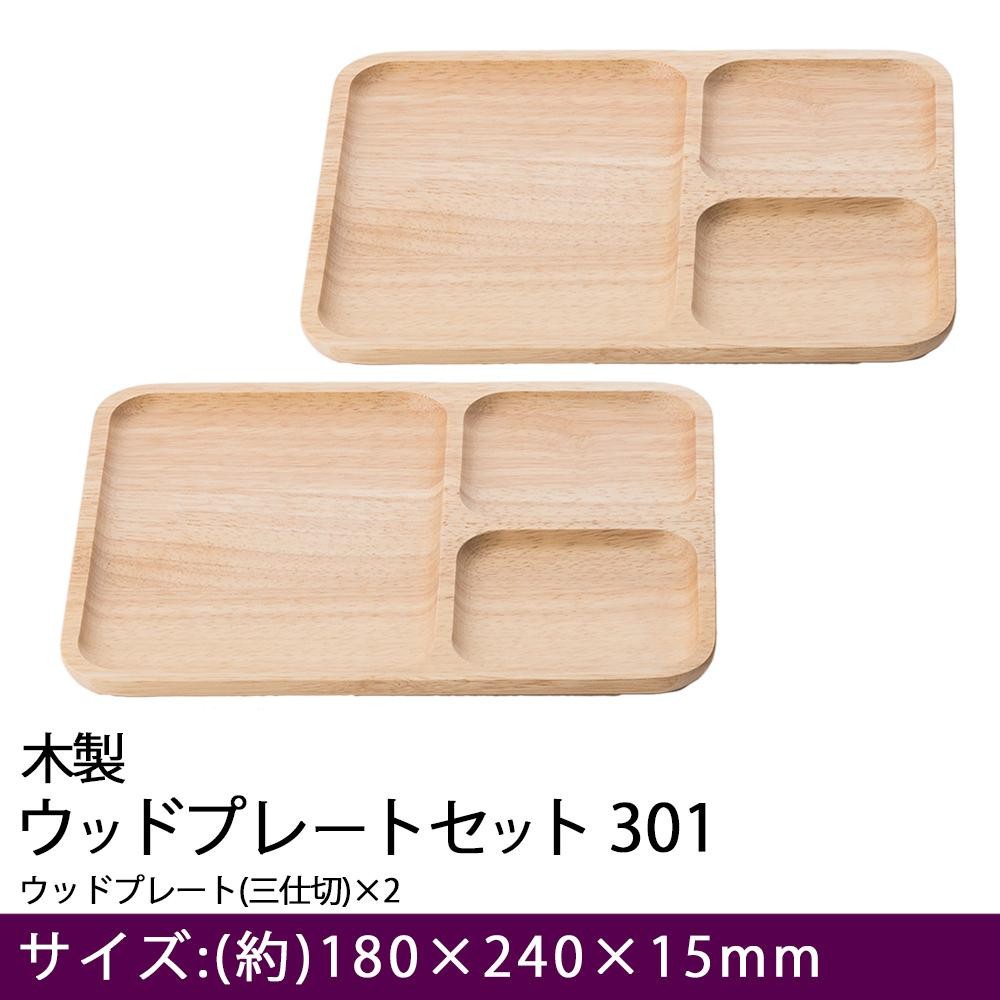 温かみのある木目が特徴のウッドプレートのセットです。食パンやサラダを盛り付けるのに適したサイズです♪ 製造国:ベトナム 素材・材質:天然木(ラバーウッド) 商品サイズ:(約)180×240×15mm 仕様:電子レンジ・食洗機使用不可 セット内容:ウッドプレート(三仕切)×2 ※サプライヤー直送品 ご注文後2~3営業日後の出荷となります【商品名】木製 ウッドプレートセット 301 535-301