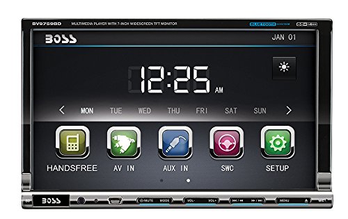 -. Title : Boss Audio BV9759BD Car DVD Player - 7 inch Touchscreen LCD - 68 W RMS - Double DIN - DVD Video, Video CD, MP4, AVI - AM, FM - Secure Digital (SD) , MultiMediaCard (MMC) - Bluetooth - Auxiliary Input - 2 x USB - 800 x 480 - iPod/iPhone Compatible - In-dash