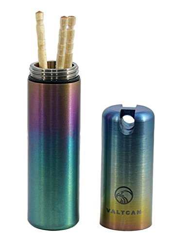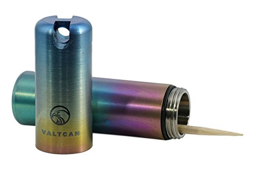Full titanium construction provides lightweight (about 1 oz) and air tight storage of flavored toothpicks, pills, or bills.