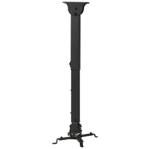 -. Feature : Fits flat and vaulted ceilings, Ceiling plate dimensions 4 in x 1.5 in, Heavy duty steel construction supports weight up to 44 lbs / Without extension poll, the height is 5.9"; With extension poll, height adjustable from 18.1" to 28.3" (45.9-71.8 cm); Ceiling plate adjustable 0 to 90 degree swivel / With two pair of the longer extension adaptors the mount could cover an area up to 17 inch in diameter / Multi-directional adjustment tilts, swivels, Rotate and extends / Package content: Ceiling plate, ceiling poll, mounting arms, extension adaptors and standard hardware to your projector and ceiling included