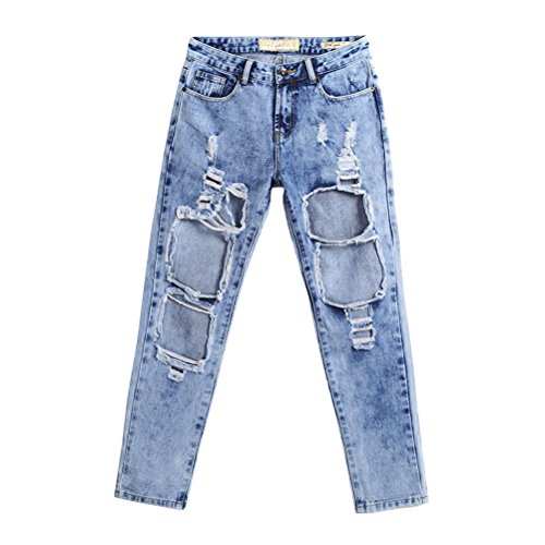 -. Title : MCUKAY 九分丈 ダメージジーンズ 柔らかい ストレートデニムパンツ レディース 高校生 ゆったり おしゃれ ウォッシュ加工 ボーイフレンドデニム