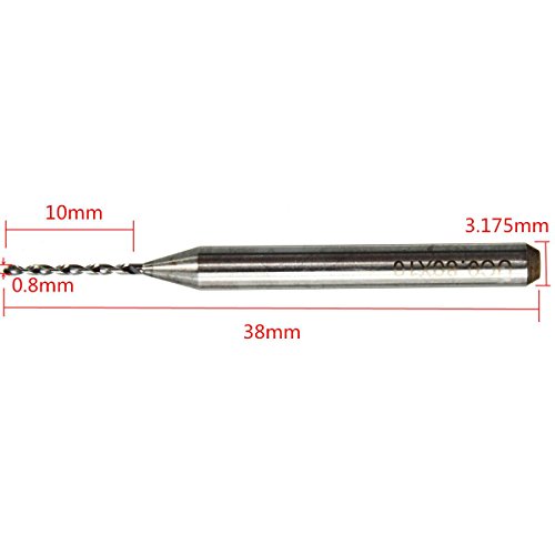 - Feature : Cutting Edge Diameter: 0.8mm ,Cutting Edge Length: 10mm / Shank Diameter: 3.175mm / Carbide rods and tungsten steel rods, with high hardness, high wear resistance, high strength, resistance to bending, anti-impairment and long tool life. / Range of processing: PCB, SMT, the CNC, mold, plastic, and other precision metal parts processing. / Drill bit chip evacuation space large, chip evacuation resistance small, chip removal smooth. In favor of efficient cutting, avoid offset drilling.