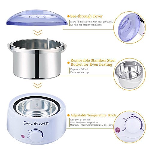 Package Includes: 1 x Wax Heater 1 x Bag of 300g Wax Bean 1 x Bag of 100g Wax Bean 5 x Spatulas 1 x Manual