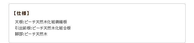 材質:天板-天然木化粧繊維板(ビーチ)、引出前板-天然木化粧合板(ビーチ)、脚部-天然木(ビーチ)・ラッカー塗装