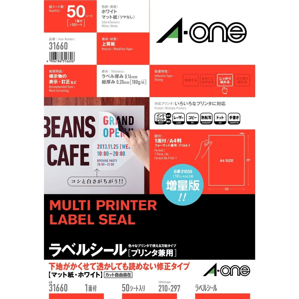 Modify not read even watermark-One label seal uncut 50 sheets 31660