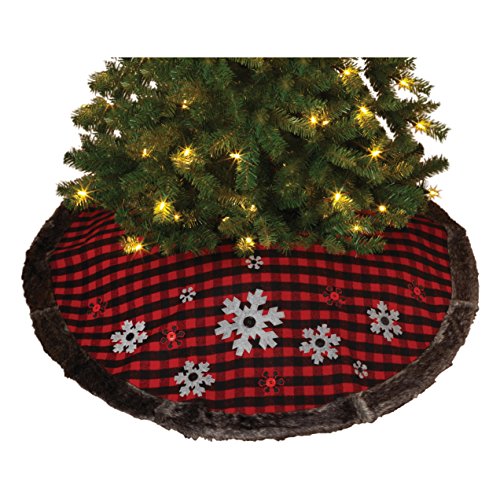 Gerson 48"d Plaid Tree Skirt w/ Faux Fur Border, Applique & Embroidery, Snowflake Design