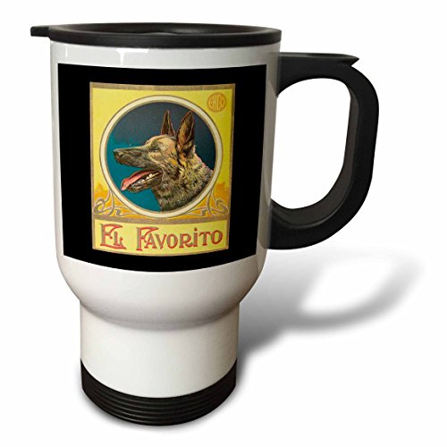 3dRose tm_11903_1 Vintage German Shepherd Label Travel Mug, 14 oz, White