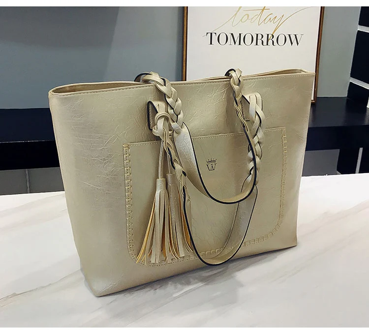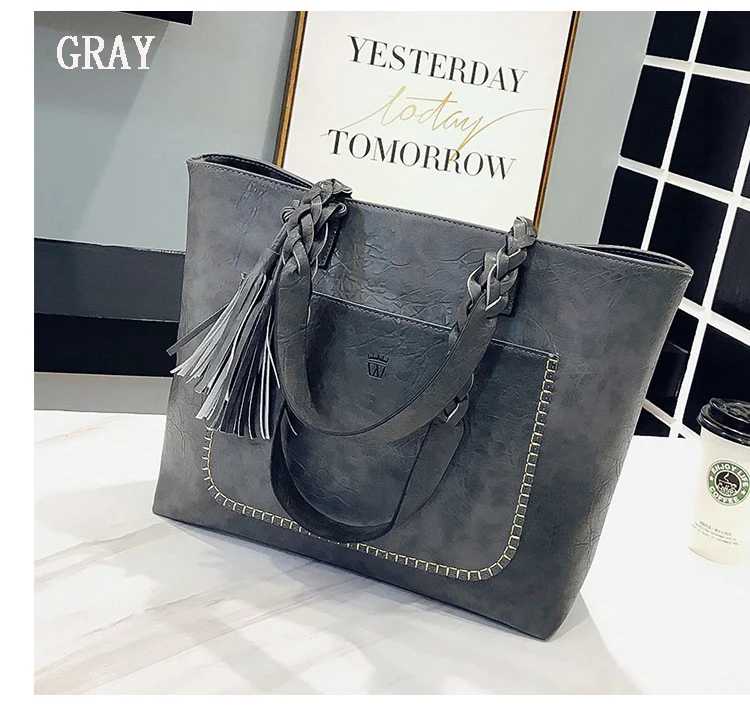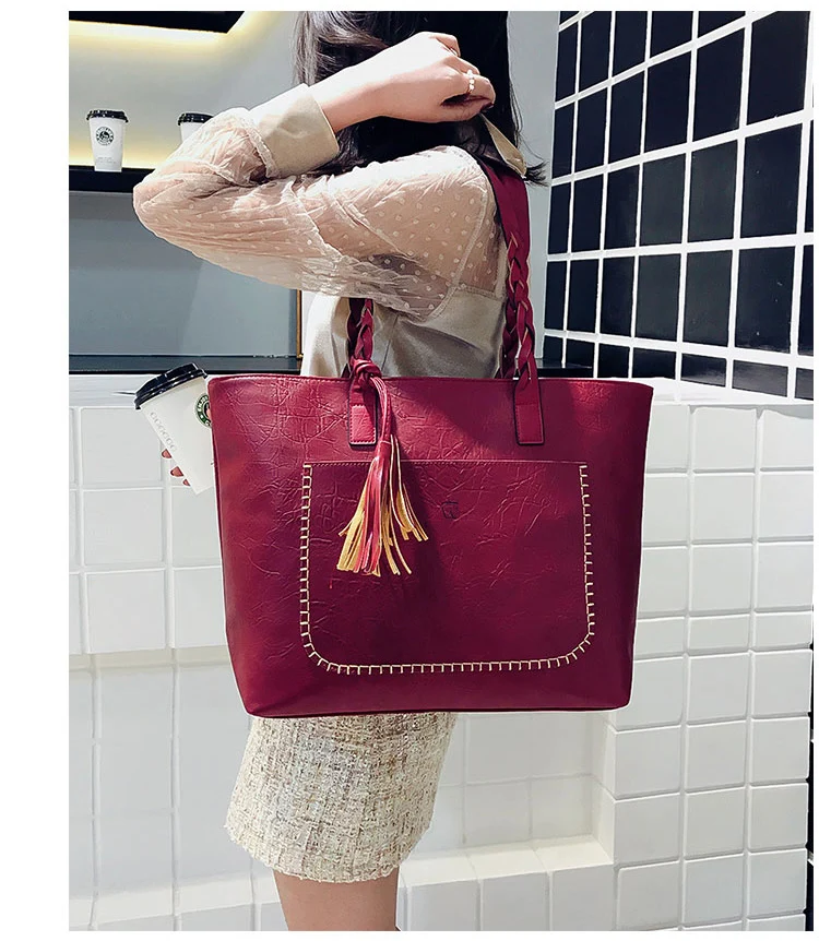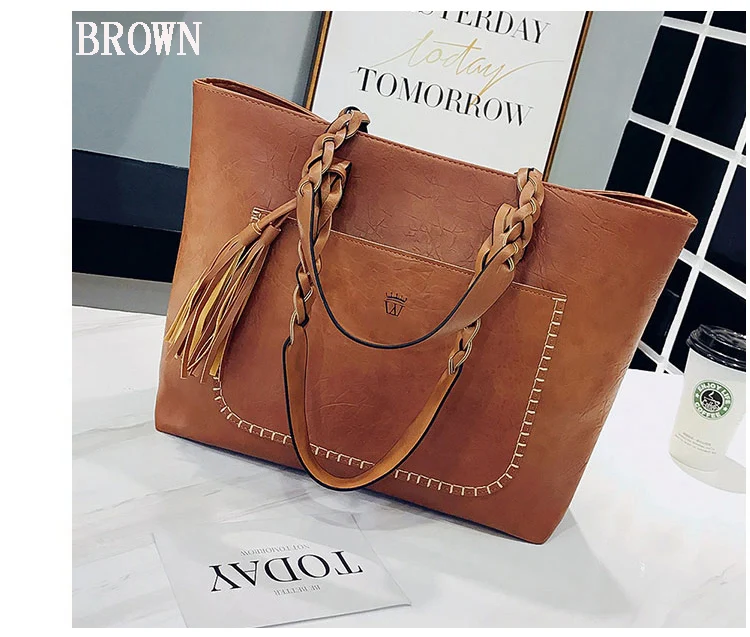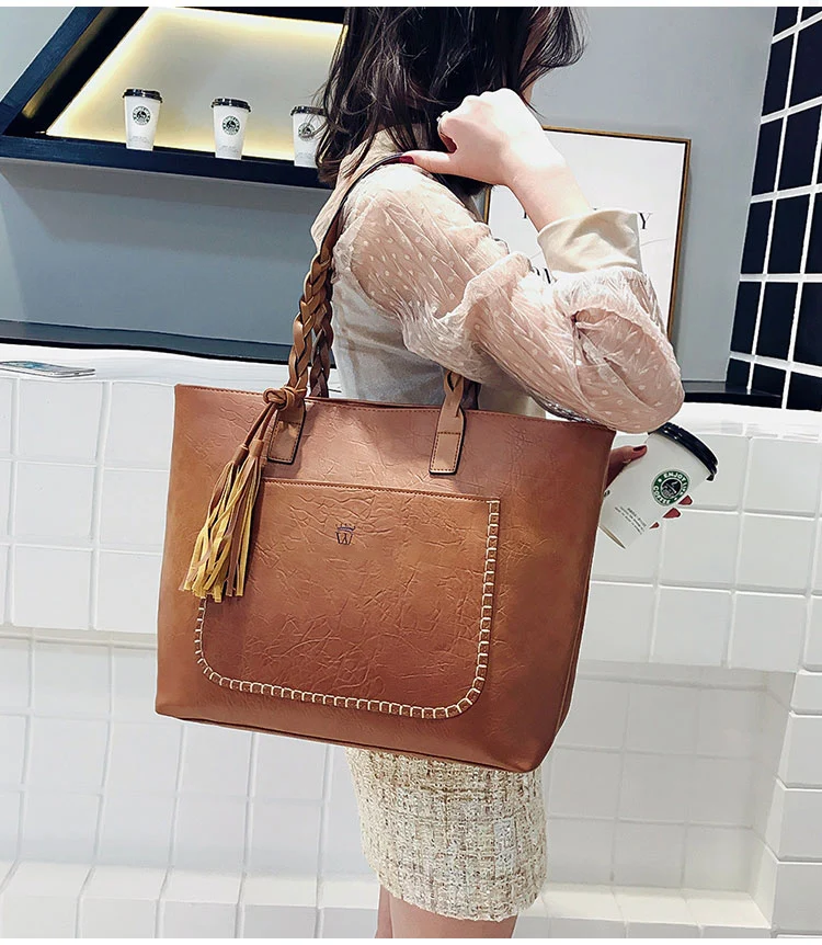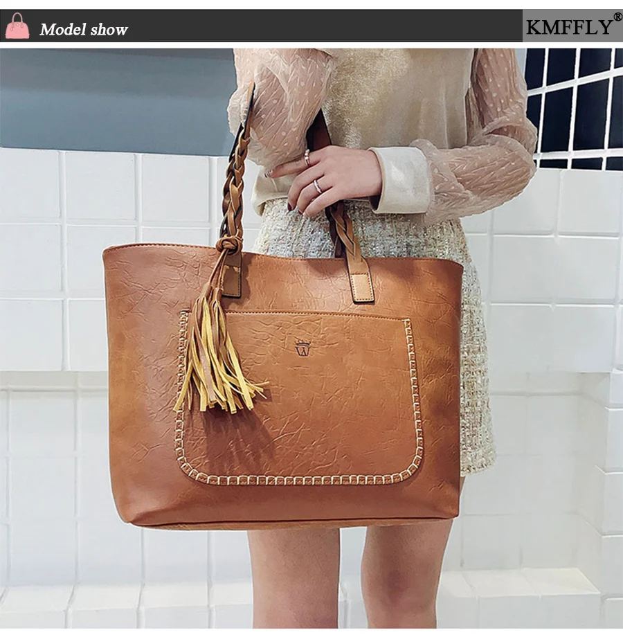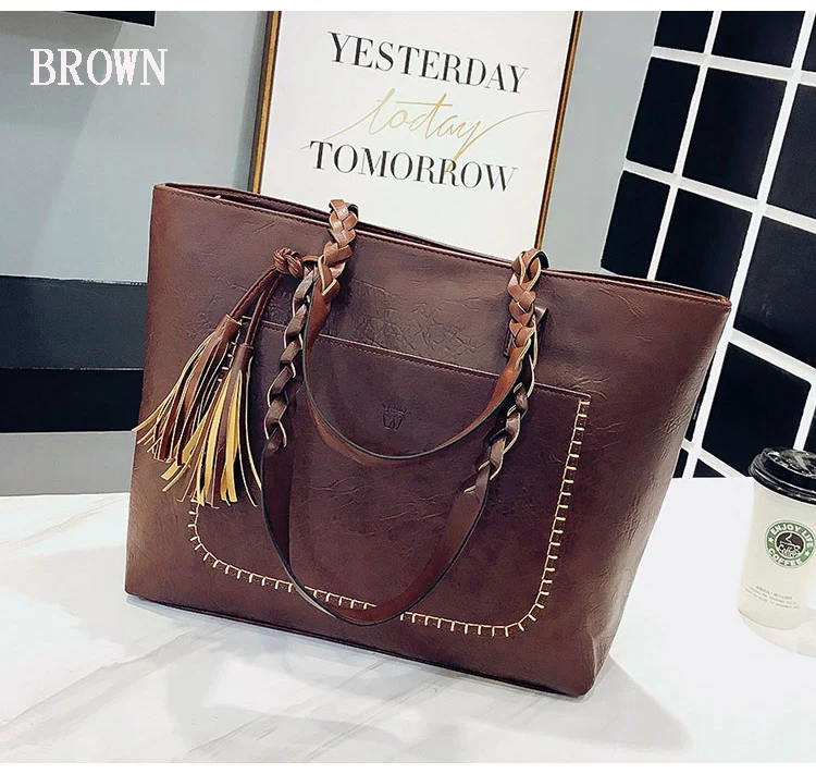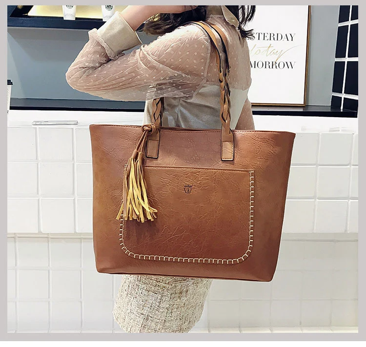 | kmffly女性バッグビッグバッグ女性ヴィンテージpuタッセルショルダーバッグ女性レトロ毎日因果トートバッグレディエレガントなショッピングハンドバッグ |