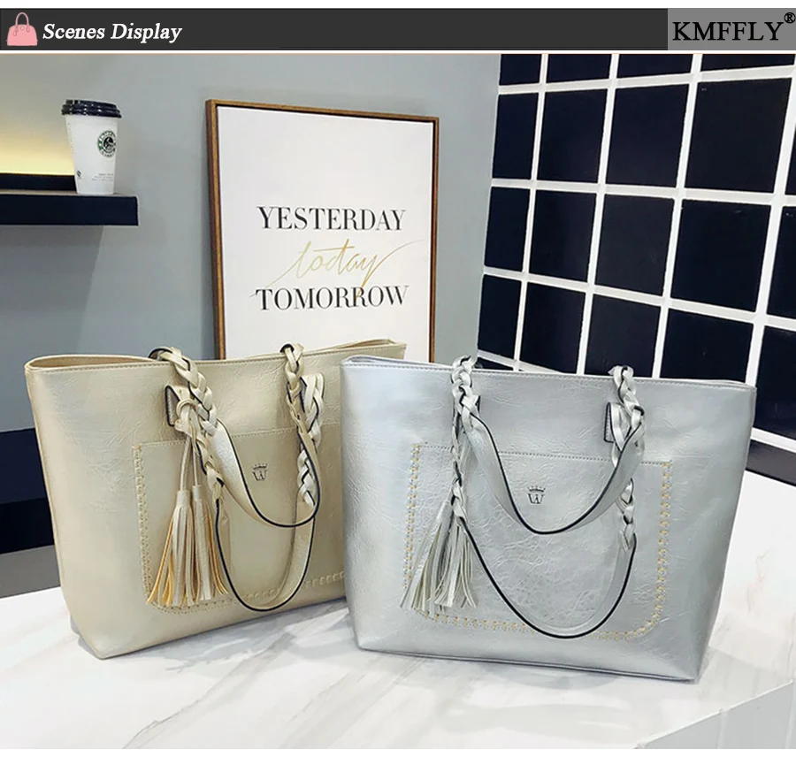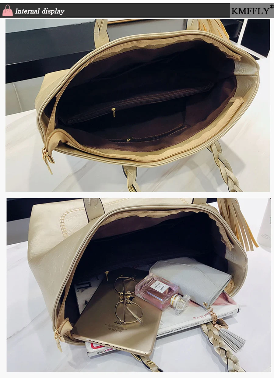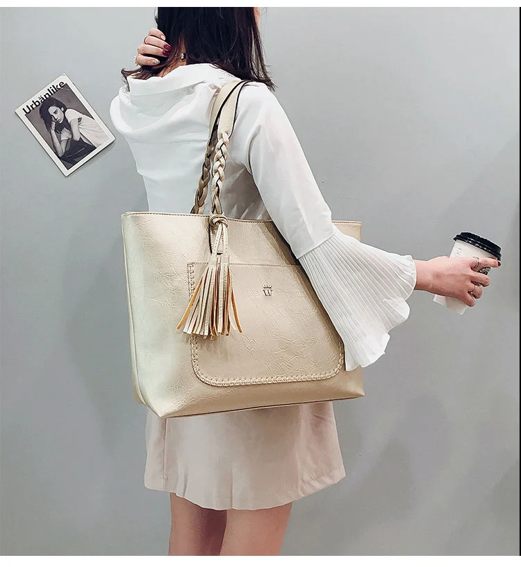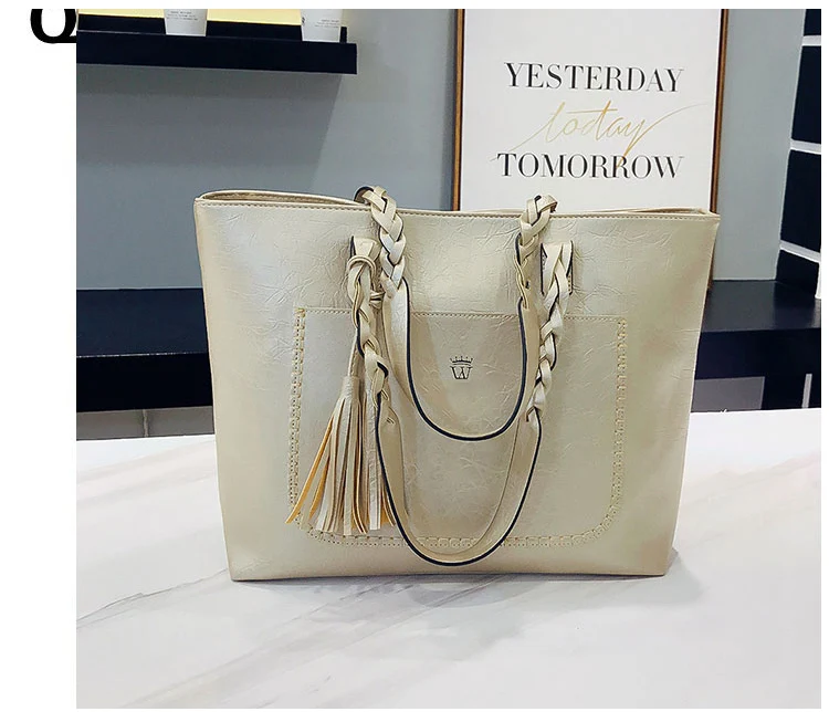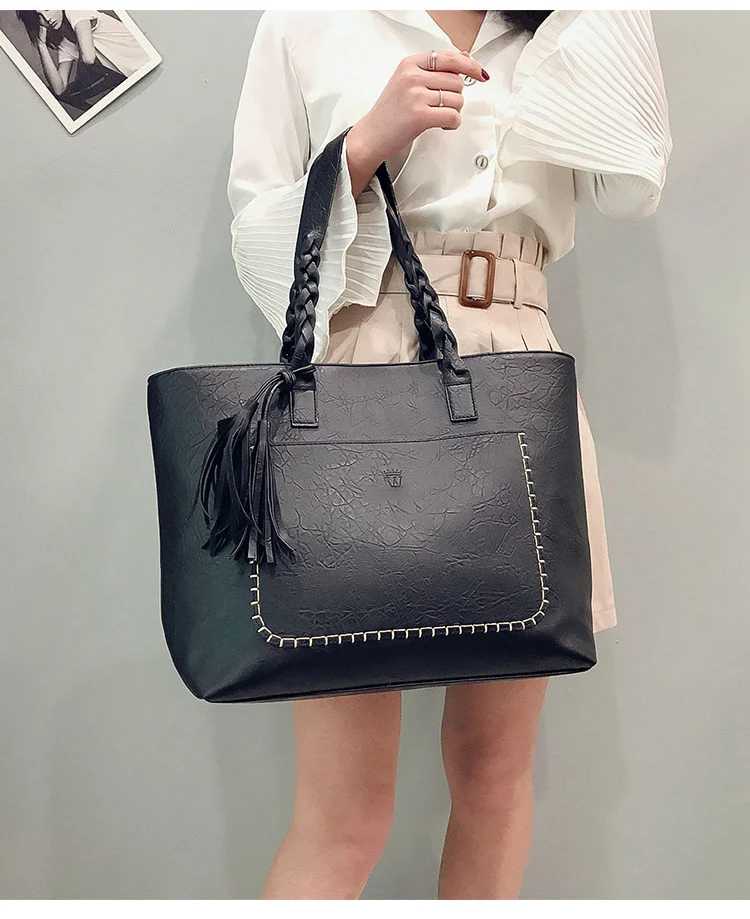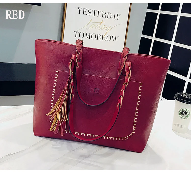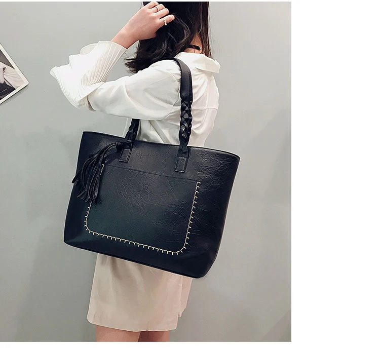 | kmffly女性バッグビッグバッグ女性ヴィンテージpuタッセルショルダーバッグ女性レトロ毎日因果トートバッグレディエレガントなショッピングハンドバッグ |