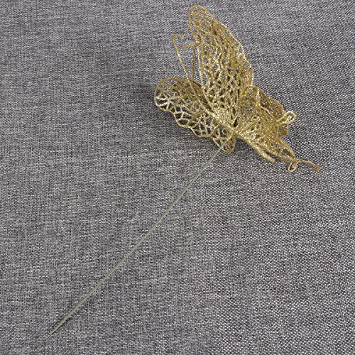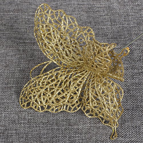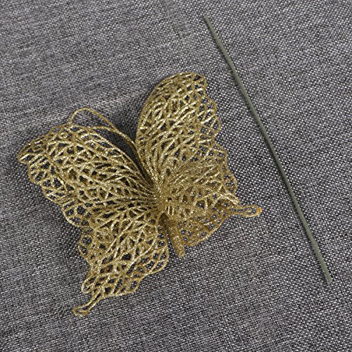 Tinksky 6Pcs Christmas Butterfly Christmas Decorations Christmas Tree Ornaments Wedding Party Decorations 3"/8cm (Gold)