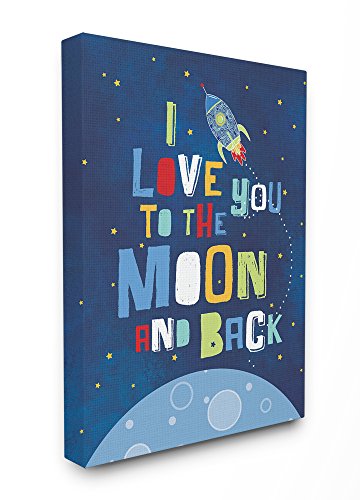 Stupell Home Décor I Love You Moon and Back Rocket Ship Stretched Canvas Wall Art, 16 x 1.5 x 20, Proudly Made in USA