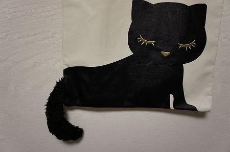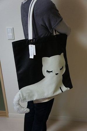 Osumashi Pooh Chan Black Cat Pooh Chan Flat Big Tote Bag with Cat Tail Pink P11096