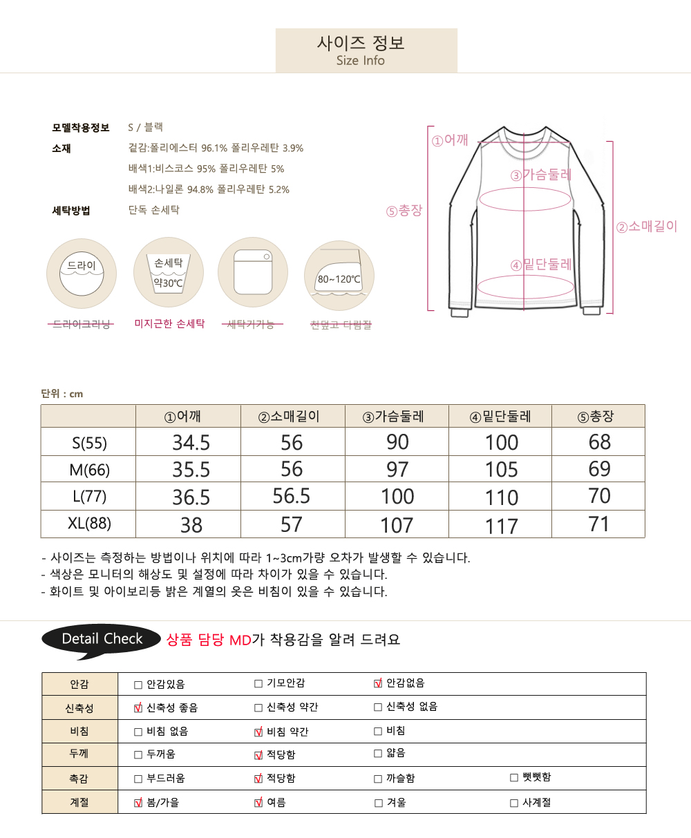 S(55) / M(66) / L(77) / XL(88) 총 네가지 사이즈로