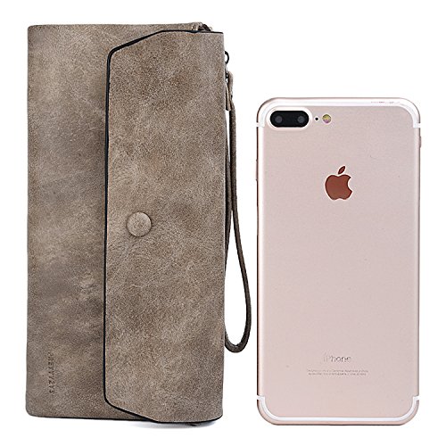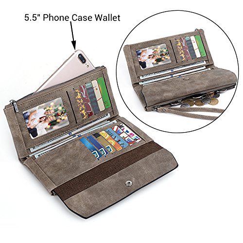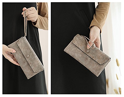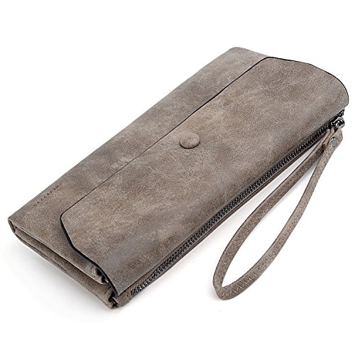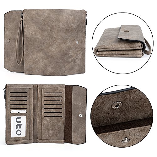 UTO Women Wristlet Wallet Large Capacity Luxury Wax/Matte PU Leather Card Slot Zipper Phone Holder Purse