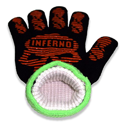 - Feature : OPTIMAL SAFETY: Awarded our SafeUX seal. Your hands are 100% protected against intense heat, fire burns and flash flames while you work in and out of the kitchen on or around ovens, stoves, pots, pans, BBQ grills and cooking appliances with hot surfaces. Make use of industrial proven flourescent reflectors to help locate gloves easily in the dark. / OPTIMAL COMFORT: Awarded our ComfortUX seal. You enjoy the comfortable fit from the contour fitting inner liner that is knitted from natural super soft untwisted yarn. The liner wraps around your fingers and hand gently. The material expands and contracts elastically like your second skin. The abrasion-free liner also allows your skin to breathe, absorbs sweat, eliminate smells, remove skin irritation while keeping your hands cool and dry. / OPTIMAL CONTROL: Awarded our ControlUX seal. Gloves have excellent dexterity. Each of your fingers retains full flexibility and freedom to move independently. Hence, your hands maintain control while you grill. The textured non-slip grip are made of soft FDA compliant silicone that provides the maximum grip when handling food, grill tools and cooking equipment. The large palm pad ensures the largest surface area of contact for traction. / OPTIMAL DESIGN: Awarded our DesignUX seal. Gloves are designed to appear amazingly appealing yet practical. Intelligently engineered to ensure structural strength, comfort and durability for extended hours of use. Hassle Free Maintenance. Non-stick easy clean design prevents stains, honey, marinade, grill grime, oils and grease from adhering. Washable. / OPTIMAL QUALITY ASSURANCE: Backed by 100% customer satisfaction seal. Gloves are made from naturally known or hybrid natural composite material that are safe for humans and environment.