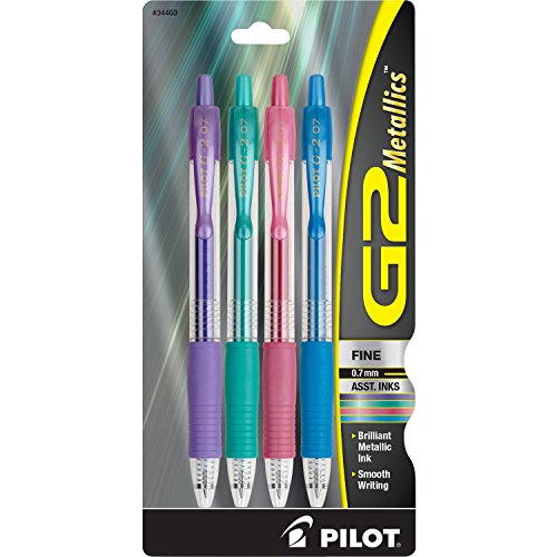 Discover writing perfection with G2... America's #1 selling Gel Ink Pen according to ACNielsen! With a contoured rubber grip for writing comfort, experience the dynamic gel ink formula that's smooth-writing and smear-proof. Retractable and refillable, G2 offers extreme value with longest lasting ink! G2 Metallic ink is infused with micro-metallic pigments that are engineered to bind to the writing surface instead of being absorbed, resulting in crisp, clear writing with a beautiful and unique shine. Smooth writing and long-lasting just like the original G2, but now containing brilliantly pigmented gel inks that are perfect for adding personalization and differentiation. The rubber grip is designed to comfortably fit your hand. Each pen has colored ink that matches the comfortable rubber grip on the pen, so you can always tell what color you are picking up. ** Remove protective wax seal from pen tip before first use**