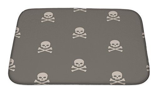 Gear New No Slip Microfiber Memory Foam Grunge Pattern with Skulls & Bones Bath Rug Mat, 24" X 17"