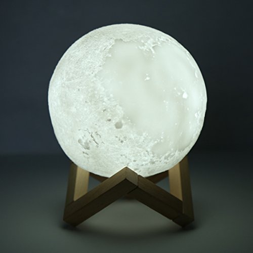 Ideapro lunar moon lamp desk light This moon shaped lamp is printed through a 3D printer to capture the full extent of the moon's surface, with its dents and craters.The lamp is made of a material called polylactic acid,which is an environmentally friendly