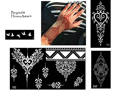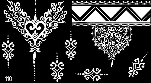 The henna tattoo stencils are self-adhesive and are suitable for Henna Tattoo, Glitter Tattoo and Air Brush Tattoo. USA quality standard.