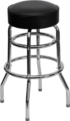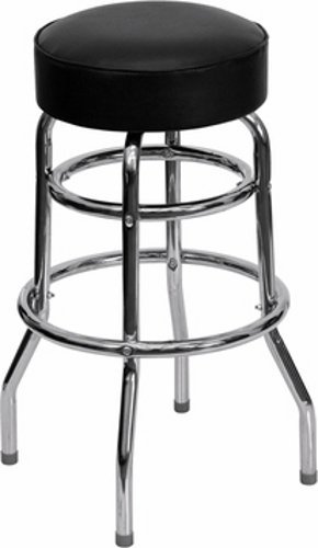-. Title : Double Ring Chrome Barstool with Black Seat