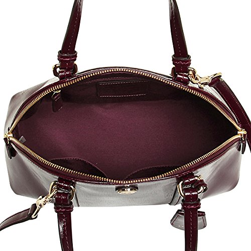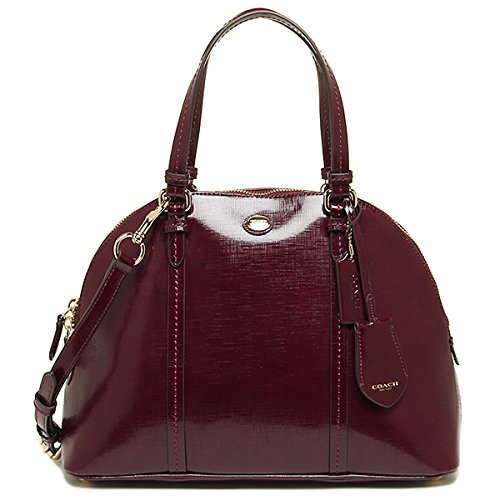 -. Binding : Apparel -. Brand : Coach -. Color : Sherry -. Department : womens -. EAN : 0888067593570 -. Feature : Deep Sherry red glazed saffiano leather with brass tone hardware / Lined interior with zippered pocket and two open slip pockets / Fully zippered top closure with dual zipper pulls and an open slip pocket on the back / Dual handles with a 5" drop or use the adjustable and removable shoulder / cross-body strap / Measures approximately 12 1/2" (L) x 9" (H) x 5 1/2" (W) -. Label : Coach Handbag -. Manufacturer : Coach Handbag -. Model : 25671 -. MPN : F25671 -. PackageQuantity : 1 -. PartNumber : F25671 -. ProductGroup : Shoes -. ProductTypeName : HANDBAG -. Publisher : Coach Handbag -. Size : Medium -. Studio : Coach Handbag -. Title : Coach Peyton Saffiano Leather Cora Domed Satchel in Sherry Red -. UPC : 888067593570