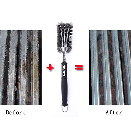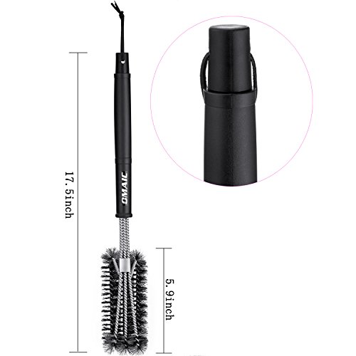 - ★High Efficiency:OMAIC grill brush's unique 3 brushes in 1 design, faster remove food, grease, and debris.It means you will be 3 times faster than the traditional brush.The strong and thick stainless steel woven wire can easy to get to any sections even the most edges and those challenging grooves of the grill