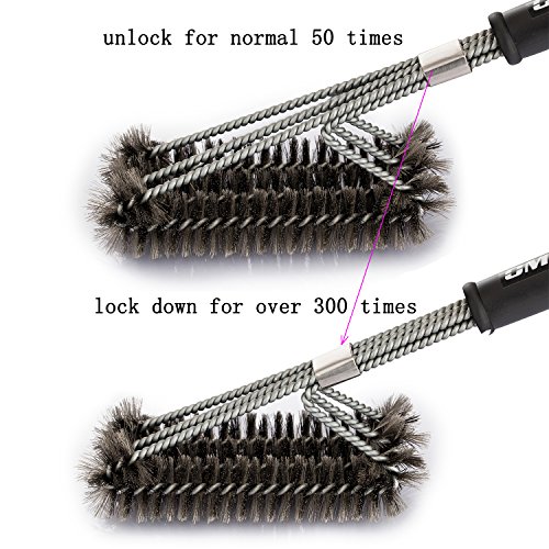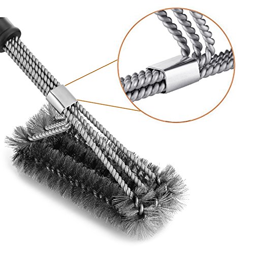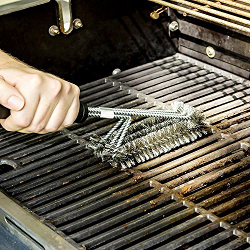 - ★Innovativenss Design:17.5-inch long barbecue grill brush with a high-quality plastic handle of 10 inches keeps you always be far away from burning. It has three innovative 360-degree rotator brushes in one,making cleaning more effective.