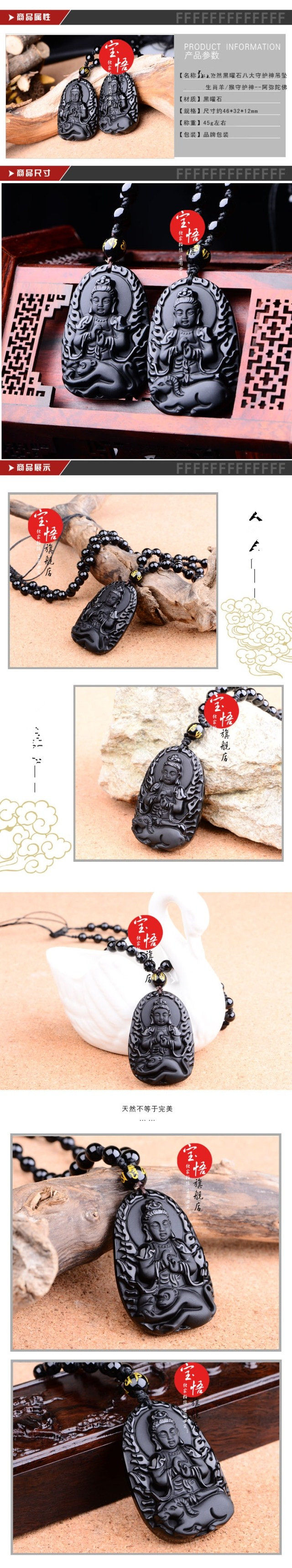 开光天然磨砂黑曜石 大日如来 生肖羊猴守护神本命佛吊坠