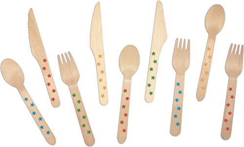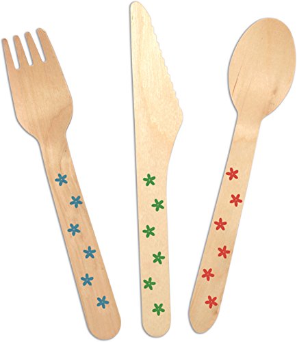 CaterEco 60-Piece Birchwood Compostable Flatware Set, 20 Forks & 20 Knives & 20 spoons, Flowers Print