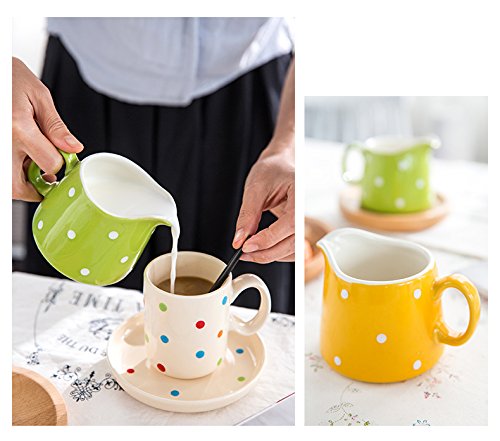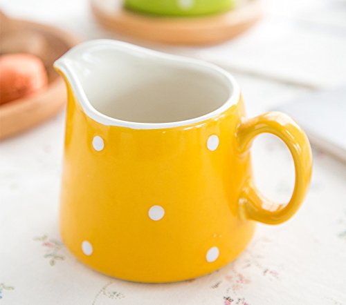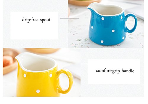 Product DescriptionCHOOLD Polka Dot Ceramic Creamer with Handle,Coffee Milk Creamer Pitcher /Serving Pitcher/Sauce Pitcher/ Milk Creamer Jug for Kitchen 8.5oz0