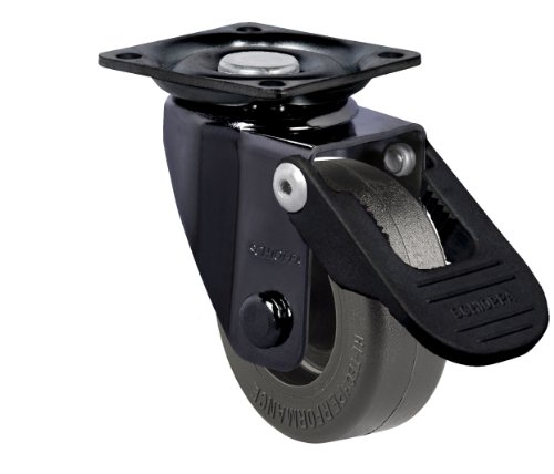 Schioppa, GLAP 210 TB FPI–BR, 2" (50 mm) Swivel Brake Caster, Non-Marking Rubber Wheel, 70 lbs, Plate: 1-21/32 x 1-21/32" (BH 1-1/4 x 1-1/4")