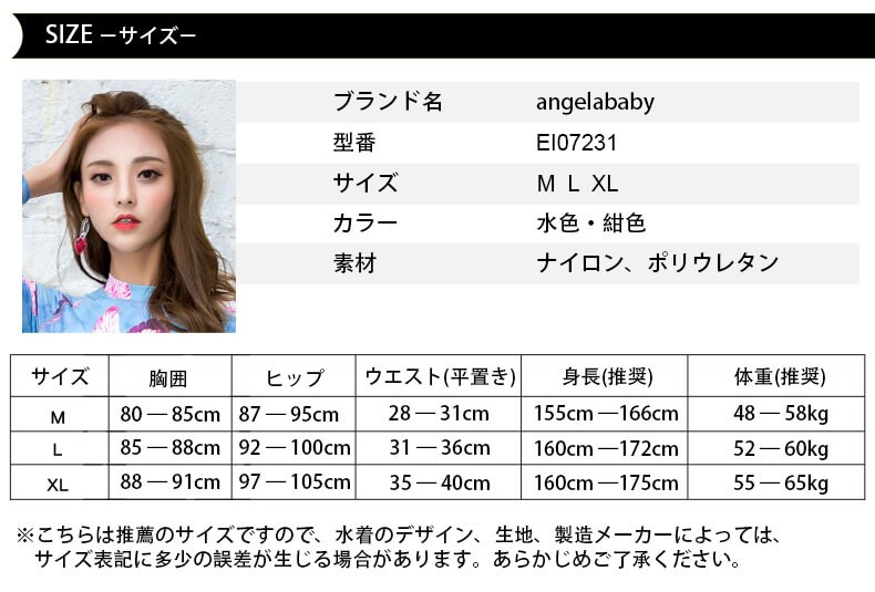 ※こちらは推薦のサイズですので、水着のデザイン、生地、製造メーカーによっては、サイズ表記に多少の誤差が生じる場合があります。あらかじめご了承ください。