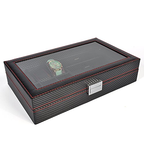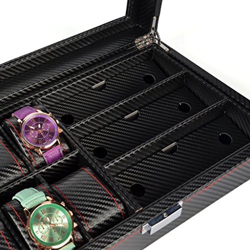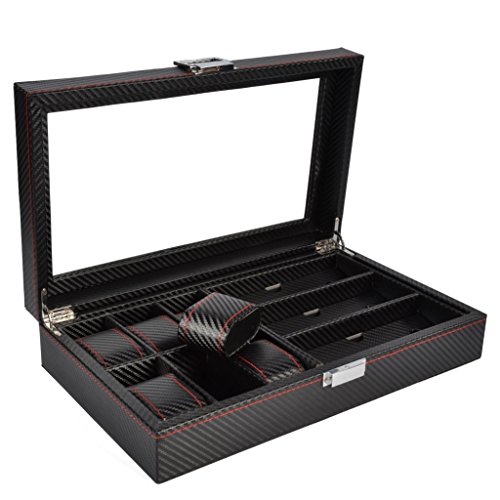 Refresh Your Life Watch and Glass Box - 6 +3 Slots Luxury Carbon Fiber Display Case-Black