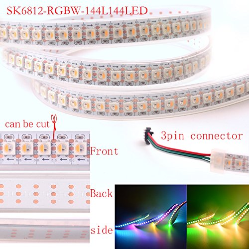 Jercio RGBW+WW Warm White SK6812 (Similar WS2812B) 3.3ft 1m 144leds/pixels/m Individually Addressable Flexible 4 color in 1 LED DC 5V Dream Color LED Strip Waterproof (1m IP67)