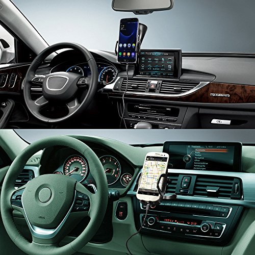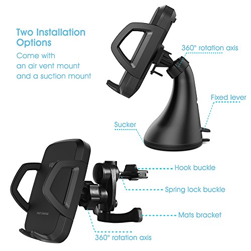 TWO INSTALLATION OPTIONS AND HIGH FLEXIBILITY: Come with an air vent mount and a suction mount for two different installation options. Provide flexible viewing angles with the 360° rotating ball joint on both mounts. RELIABLE PROTECTION AND PRACTICAL INDICATOR: Built-in over-current, over-voltage and short-circuit protection keeps your smartphone safe. Delicate design with LED light clearly indicates the standby status (green) and charging status (blue)