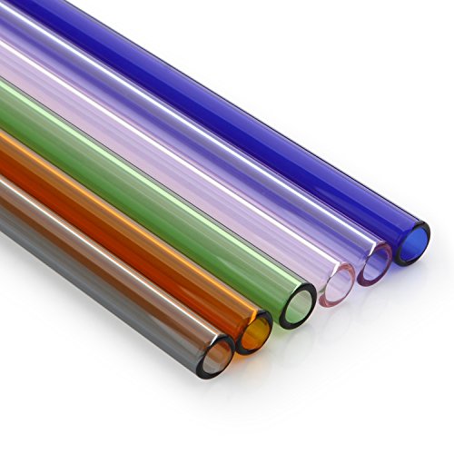 -. Title : GINOVO 200mm 10mm Reusable Straight Glass Drinking Straws, Set of 6 with 3 Cleaning Brushes, Multi Color - Green , Orange , Purple , Pink , Grey , Blue