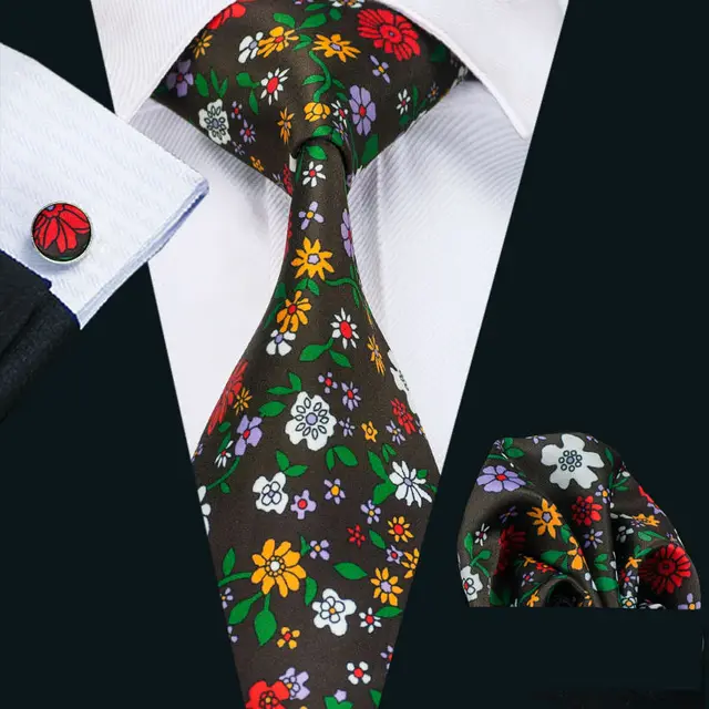 LS-1255 새로운 도착 패션 실크 넥타이 고품질 브랜드 디자인 넥타이 손수건 커프스 세트 웨딩 파티