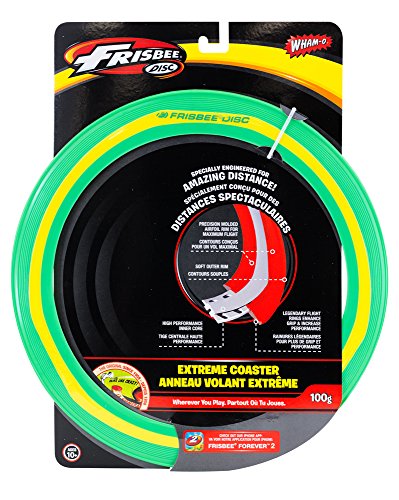 ReleaseDate : 2009-09-01 Studio : Wham-o Publisher : Wham-o Binding : Sports Product Description The Classic Frisbee toy was first introduced to the world by Wham-O in 1958 and has become an American culture iconic toy with over 100 million Frisbees sold. Due to the Extreme Coaster design it has the ability to fly incredible distances but its light weight makes a wonderful toy for boys and girls of almost any age (recommended for 5 ) and even your dog will love it as it makes a great pet toy. The Extreme Coaster has a precision molded airfoil rim for maximum flight. In addition to reliving your childhood, the Extreme Coaster Frisbee is specifically engineered for long distance so it makes a great extreme Frisbee for long distant contest and pets. Plus, it gets the kids outside, promotes physical activity and coordination skills. The Wham-O Extreme Coaster Frisbee is more than a toy?it is American heritage and every kid should own one. Play Frisbee games in the yards, at the park, or the beach and make sure to take it on a picnic. The Extreme Coasters come in either 3 color styles but ONLY ONE style will ship randomly. 0