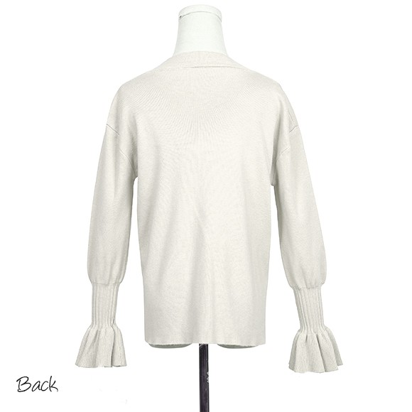 ◆商品紹介◆ キャンディスリーブが可愛らしいVネックニット♪Vネックなので甘すぎず大人っぽくも着て頂けます☆無地のシンプルなデザインでボトムスを選ばないので着回し力も抜群☆◆素材感・サイズ感◆ 柔らかい素材感 [素 材]アクリル100% [伸 縮]あり[透け感]なし[裏 地]なし◆モデル◆・身長156cm・フリーサイズ着用 ※お客様の体型や身長により写真のモデルとの着用感に多少の違いが出る場合がございます。◆サイズ◆ ※サイズ詳細は平置きで測った際のサイズとなっておりますので多少の誤差(約2-3cm)は予めご了承下さい。 総丈:約55cm 肩幅:約44cm 袖幅:約26cm 袖丈:約48cm バスト:約100cm 袖口:約16cm ※画像の色味はお使いのパソコンやスマートフォン等モニター環境により実際の色味とは若干異なる場合がございます。